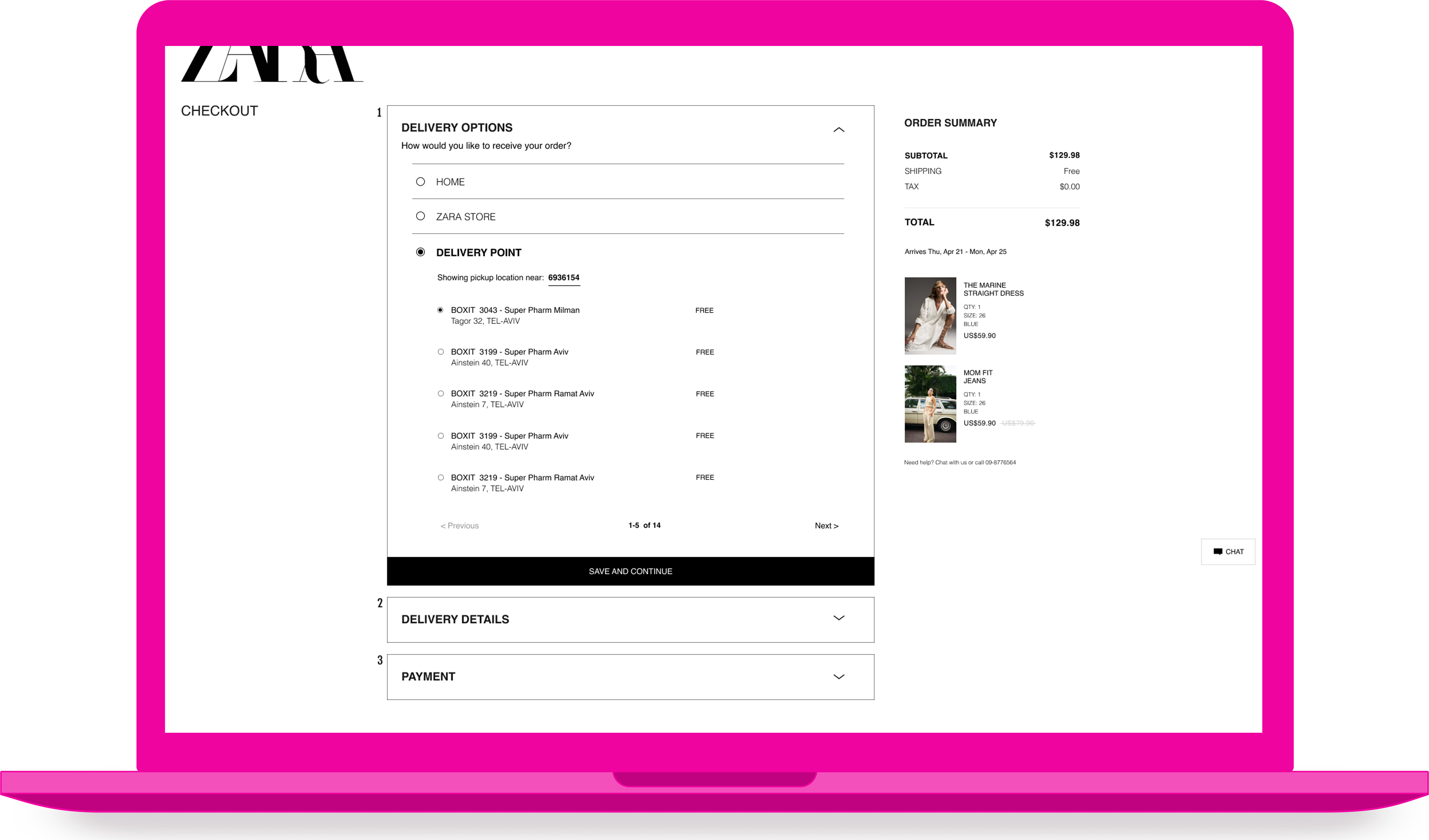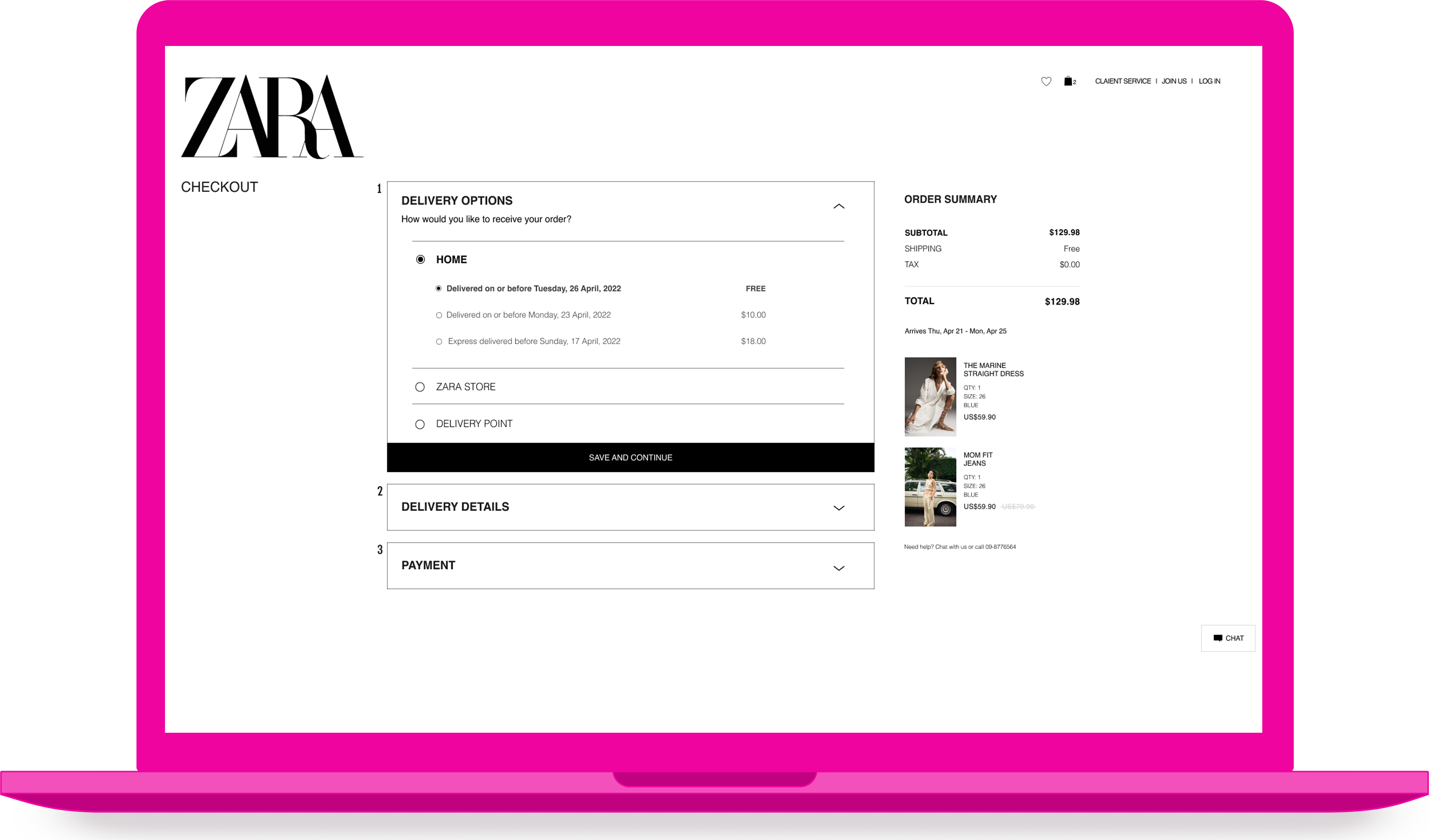 As Zara is considered fast fashion, adjust the payment options for casual customers, and provide a quick look at the items